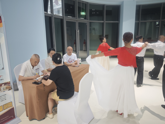 排练厅内,身着鲜艳演出服的叔叔阿姨们精神抖擞,现场洋溢着欢乐的艺术氛围。不少艺术团成员在候场间隙,特意来到宝芝堂的义诊区域咨询健康问题,丁渝周医生团队也贴心地为他们调整了问诊时间,确保不耽误大家的演出准备。