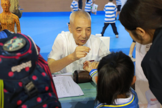 成都宝芝堂中医馆丁渝周副主任早早坐诊义诊专区,桌上整齐摆放着脉枕、问诊记录表,刚一开场就吸引了大批师生、家长排队等候,丁渝周副主任为到场的师生和家长提供了公益义诊把脉,专业又贴心~
