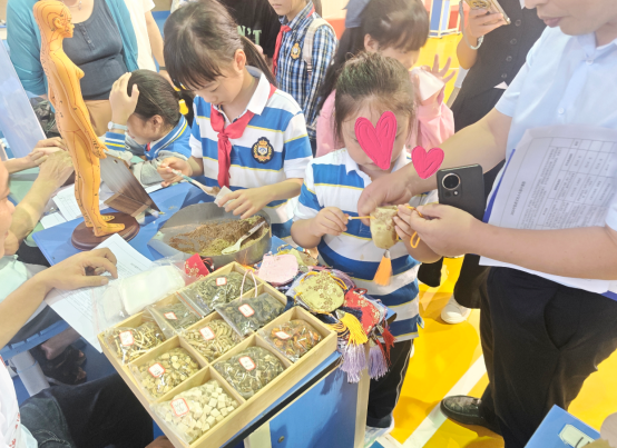 同时,在现场,另一边的中药香囊手工区,更是成了孩子们的 “欢乐天地”!医馆工作人员提前准备了多种具有驱蚊、安神功效的中药材,还贴心搭配了彩色布料、棉线、挂绳等材料包。拿到材料后,小朋友们瞬间化身 “小小中医师”,认真听工作人员讲解,专注的模样格外可爱。当一个个装满药材的香囊完成时,孩子们举着自己的作品四处展示,脸上满是成就感。