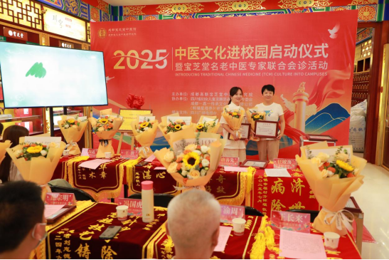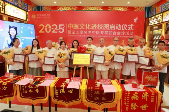 过去这一年,成都宝芝堂中医馆一次次走进校园,和孩子们一起 “探索” 中医药的奇妙世界。为表彰专家们的无私奉献,宝芝堂中医馆特地为他们颁发 “中医文化进校园推广大使” 证书及鲜花,感谢他们用专业与热情为青少年打开中医药文化的大门。