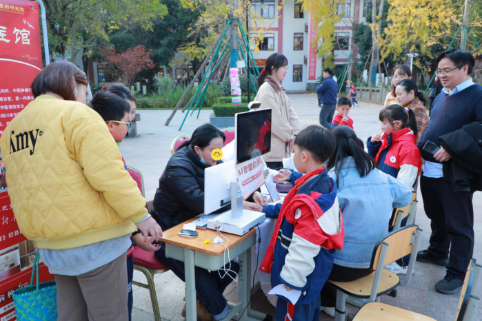 11 月 27 日,当天既是家长开放日,也是中医健康服务与校园生活深度融合的日子。我们早早抵达现场,搭建起整洁规范的义诊专区,从中医辨证咨询到健康常识普,以及养生小礼品派送,全方位满足家长与学生的健康需求。